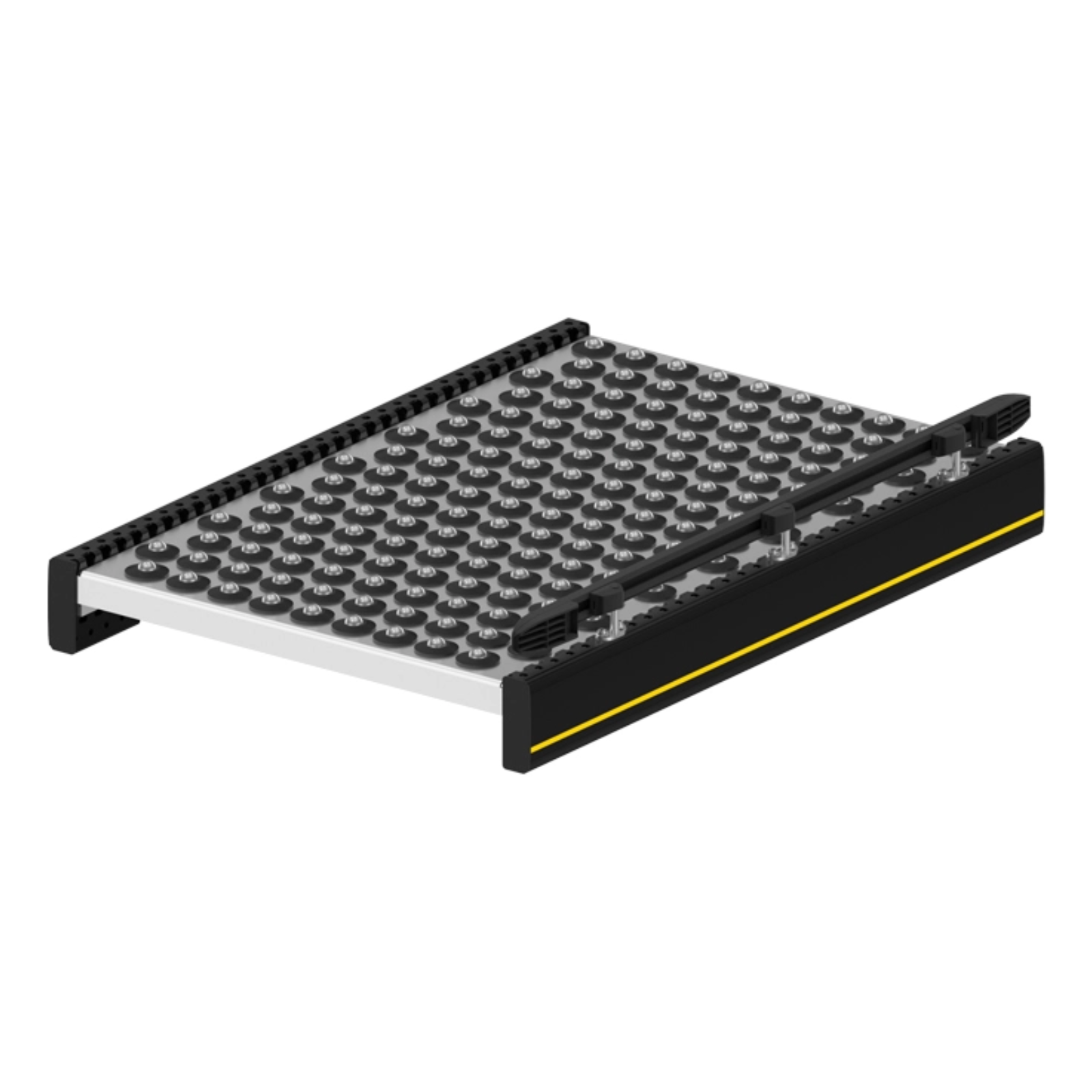 The RM 8130 ball transfer table enables operators to easily rotate, adjust, and move products in any direction. When combined with other MCP modules such as RM 8110 (straight roller conveyor), RM 8120 (curved roller conveyor), or RM 8210 (motorized conveyor), your system becomes fully integrated and operates at optimal efficiency.