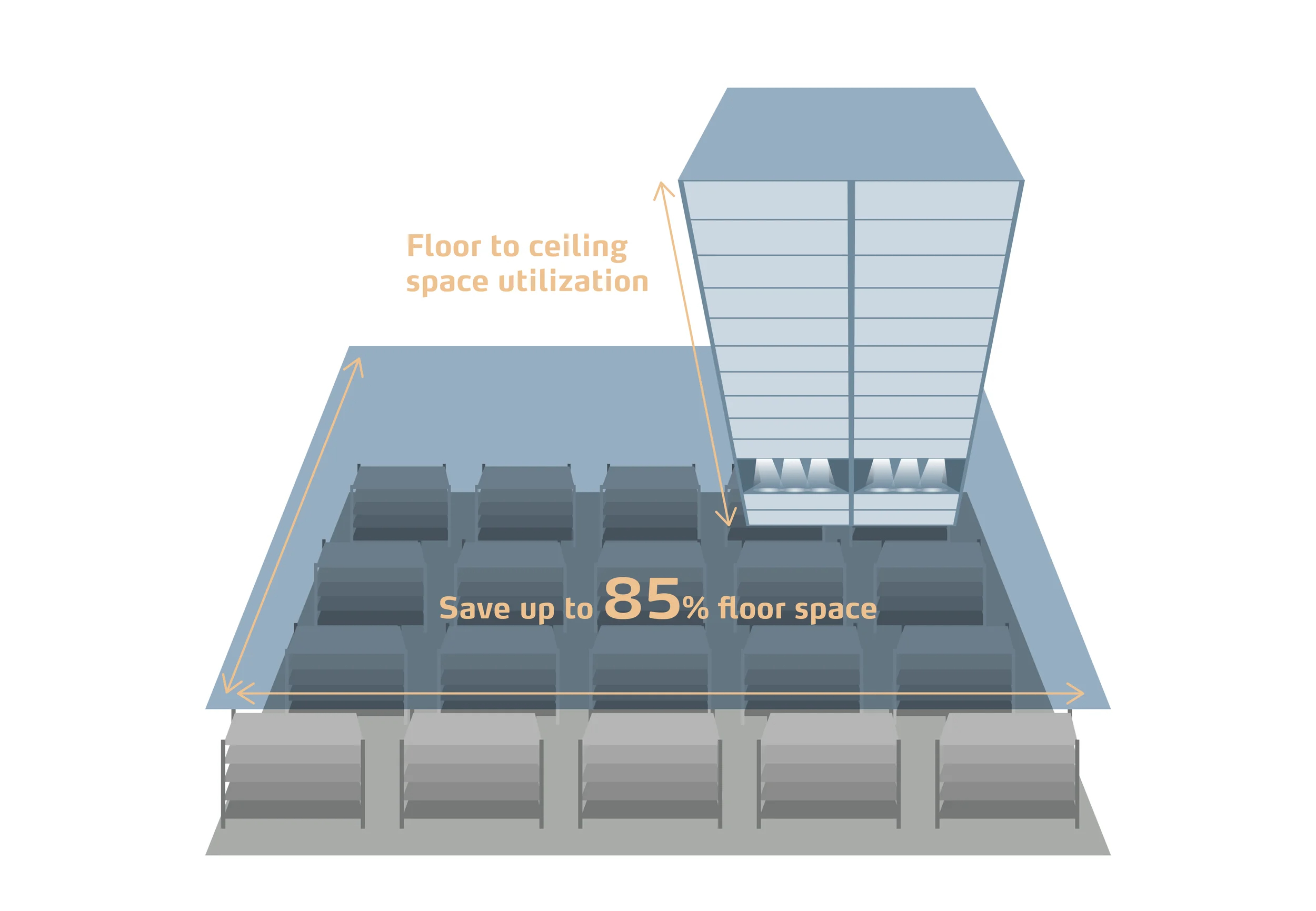 Với nguyên lý “hàng đến người”, hệ thống giúp loại bỏ việc di chuyển trong kho. Nhân sự không còn phải đi tìm hàng, leo thang hay vận chuyển thủ công.